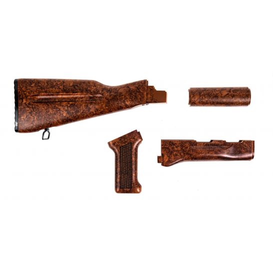 The PSA AK Imitation “Bakelite” Furniture Set is a carefully crafted reproduction of the classic Bakelite furniture popular among AK aficionados in the mid-20th century. Bakelite, one of the earliest plastics, became a favored material for firearm furniture due to its durability, heat resistance, and distinctive aesthetic. The PSA imitation set aims to replicate the vintage look with modern manufacturing techniques, offering a lightweight, durable, and visually striking upgrade for your  AK-47 rifle.